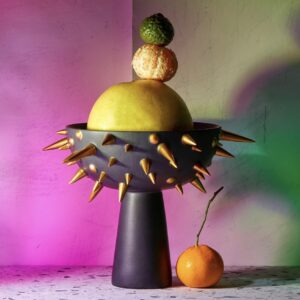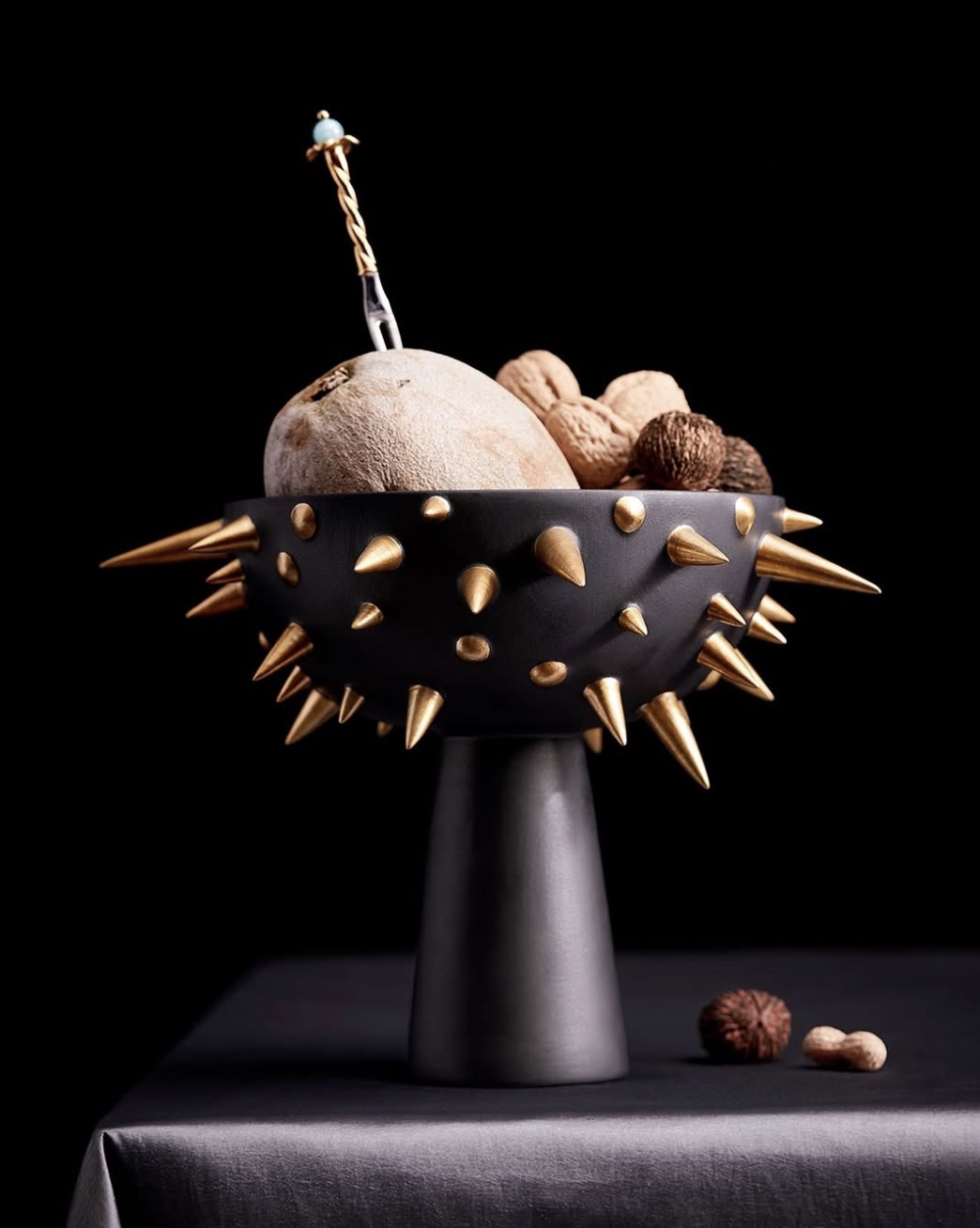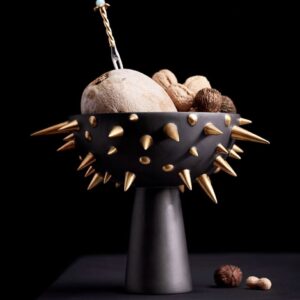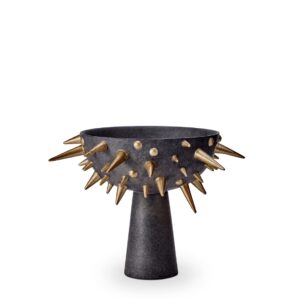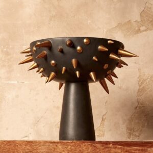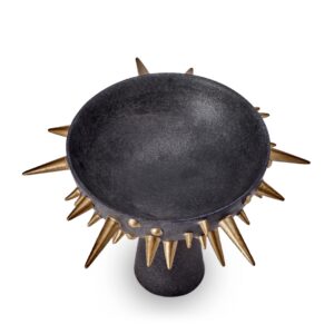 De kleine Celestial Bowl op standaard in zwart/antraciet en goud is sfeervol en elegant. De handgemaakte aardewerken kom en standaard zijn een knipoog naar primitieve kunst, terwijl de gouden details een modernere uitstraling hebben.