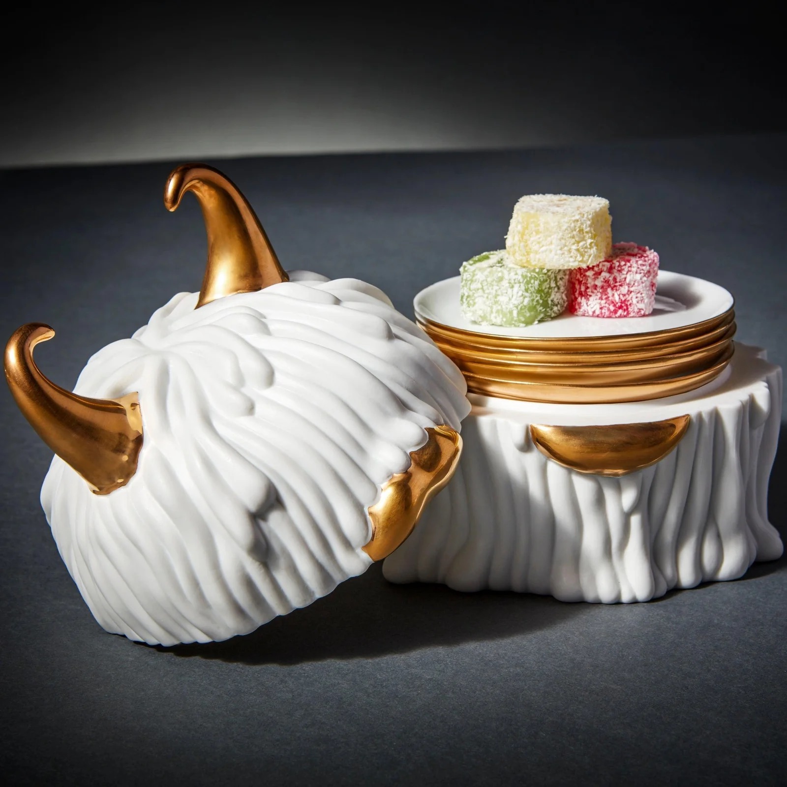 De L’OBJET Haas Brothers-collectie is een samensmelting van fantasierijke geesten. Geïnspireerd door het buitenaardse landschap van Joshua Tree, werkten de in Los Angeles gevestigde kunstenaars Simon en Nikolai Haas nauw samen met de meestervaklieden van L’OBJET om een collectie te creëren met o.a. serviesgoed. Samen hebben ze een familie van karaktervolle wezens tot leven gebracht met de hoogste kwaliteit in afwerking en functionaliteit. Door ze te gebruiken, worden alledaagse momenten memorabel: het gewone wordt buitengewoon. Royaal van formaat en handgemaakt van porselein en verguld met 24-karaats goud.