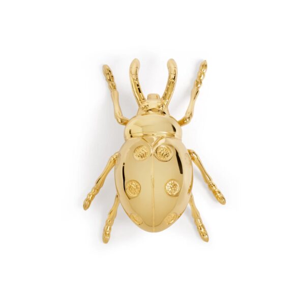 Een speelse maar elegante toevoeging aan elke bar of tafel. De Lieveheersbeest flesopener is gemaakt van metaal met de kenmerkende 24-karaats gouden plating. Met realistische vormen en geïnspireerd op een van de eigenzinnige wezens in de natuur, transformeert dit sieraad een functioneel hulpmiddel in een artistiek statement. Het doordachte ontwerp maakt het zowel een grappig cadeau als een speelse toevoeging aan een levendige avond.