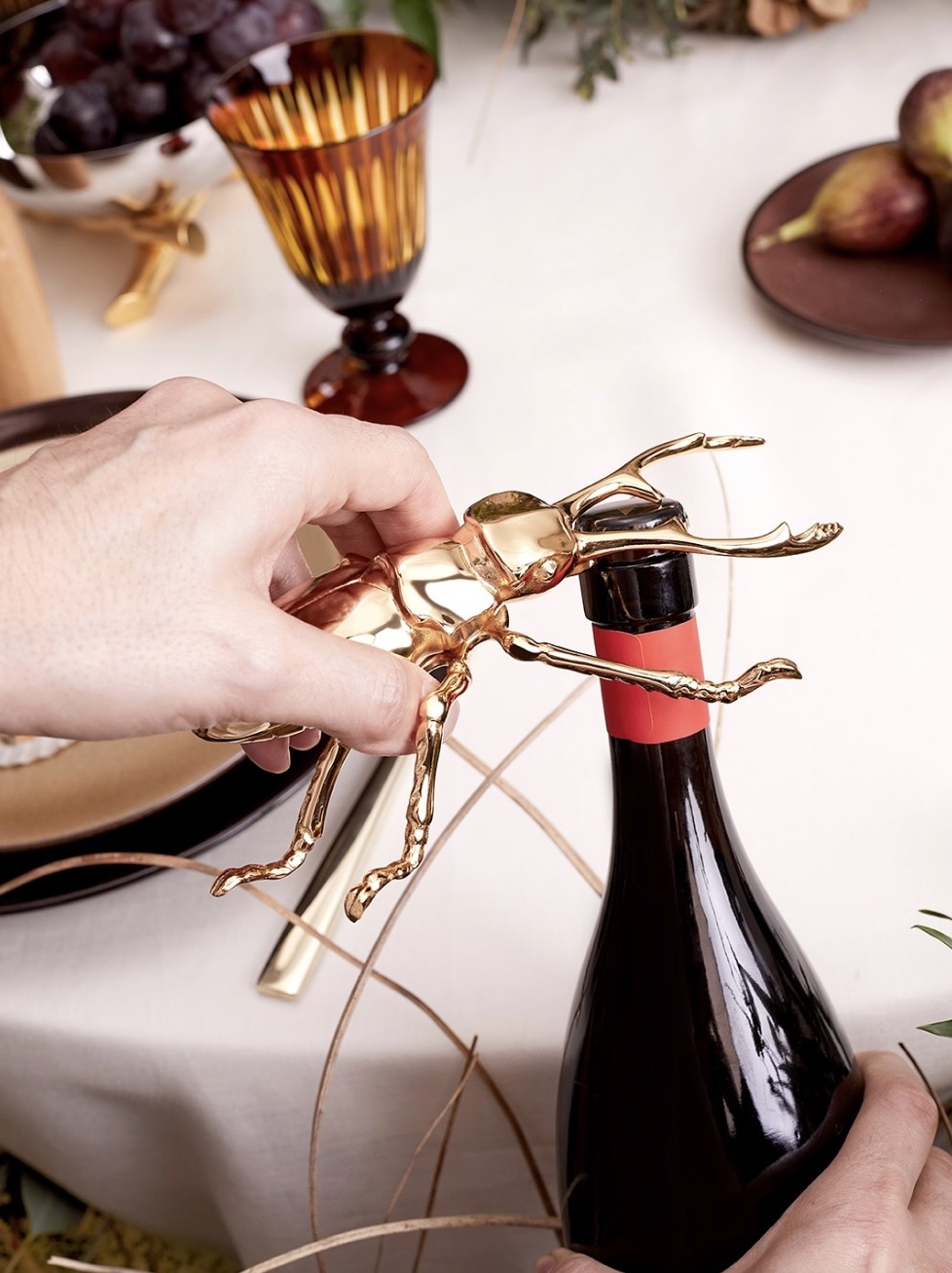 Een speelse maar elegante toevoeging aan elke bar of tafel. De Longhorn flesopener is gemaakt van metaal met de kenmerkende 24-karaats gouden plating. Met realistische vormen en geïnspireerd op een van de eigenzinnige wezens in de natuur, transformeert dit sieraad een functioneel hulpmiddel in een artistiek statement. Het doordachte ontwerp maakt het zowel een grappig cadeau als een speelse toevoeging aan een levendige avond.