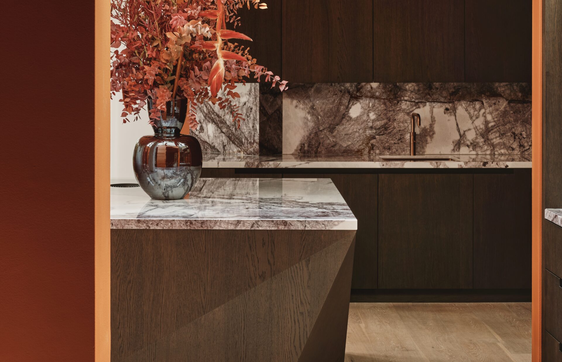 Doordat deze villa een prachtige ligging aan het water heeft hebben wij het gevoel van buiten naar binnen gehaald. De koele wit tinten en het diepe blauw van het water gecombineerd met de rijke materialen van hout, donkere fluwelen stoffen en goudkleurige details.